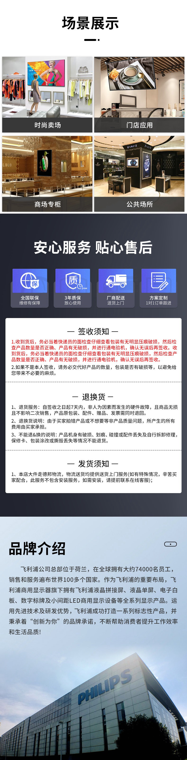 飞利浦(PHILIPS)壁挂智能广告机4K高清雾面屏商用电视商场门店企业办公信息播放终端BDL4250D支持横竖屏 86BDL4250D