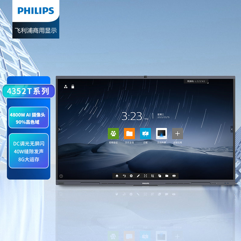 飞利浦65BDL4352T智能会议平板 安卓11.0 内存8G 存储128G 内置4800万摄像头 售后三年