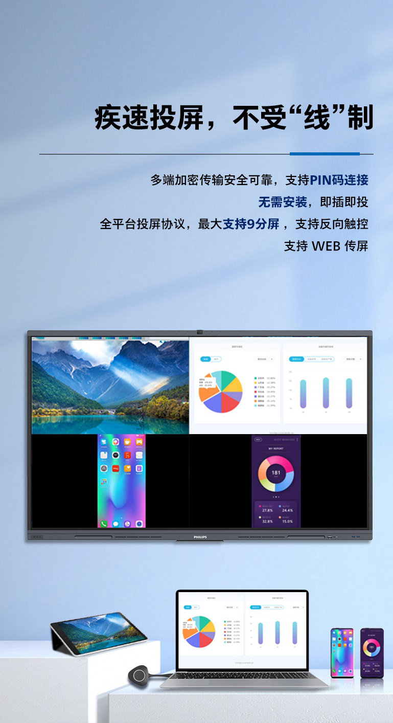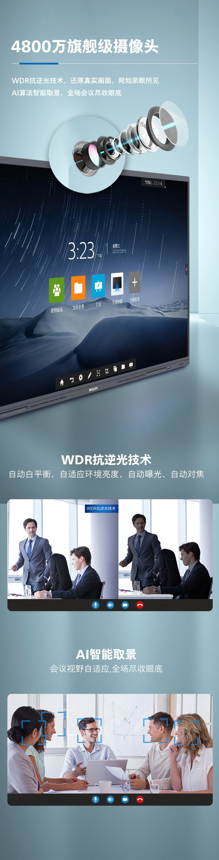 飞利浦75BDL4352T智能会议平板 安卓11.0 内存8G 存储128G 内置4800万摄像头 售后三年
